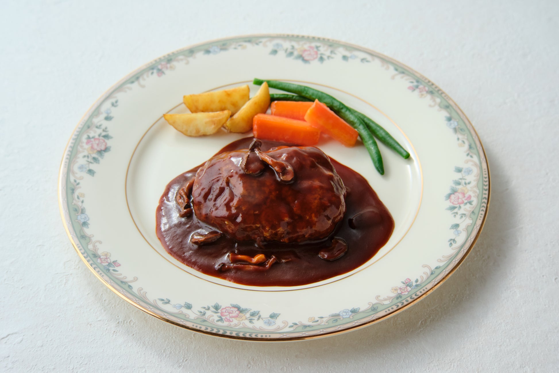 赤身の旨みが凝縮された、雲仙あか牛100%の贅沢ハンバーグ。