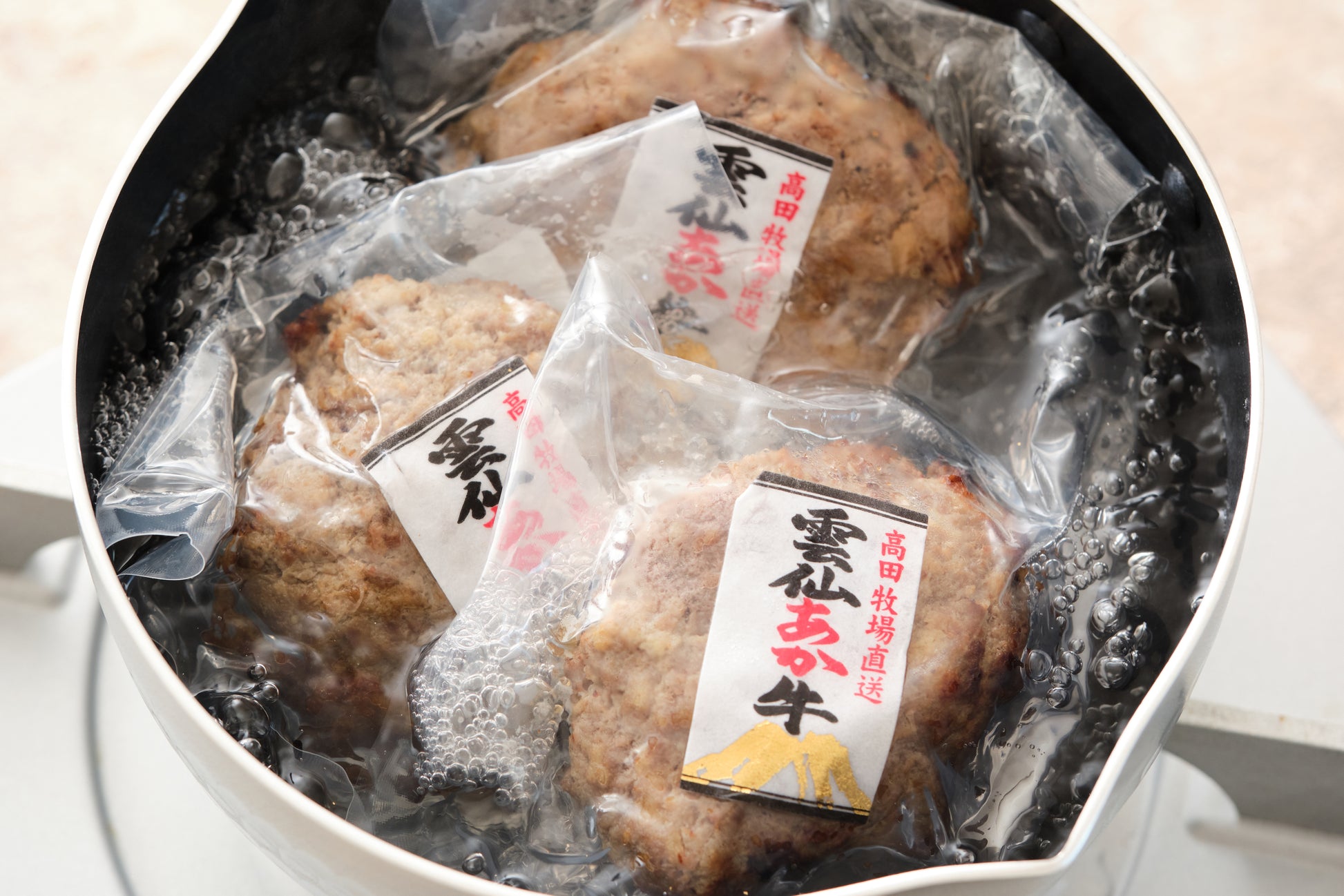 ・凍ったまま袋ごと湯煎で約20分温めてお召し上がりください。